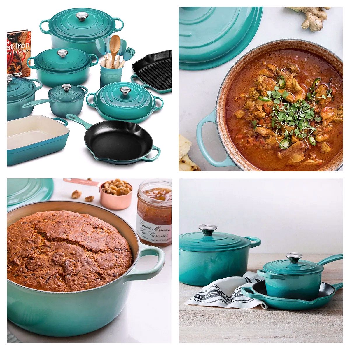 Emailierte Gusseisenkochgeschirr sorgt für gleichmäßige Wärmeverteilung und hervorragende Wärmespeicherung; farbige äußere Email widersteht Abplatzungen und Rissen