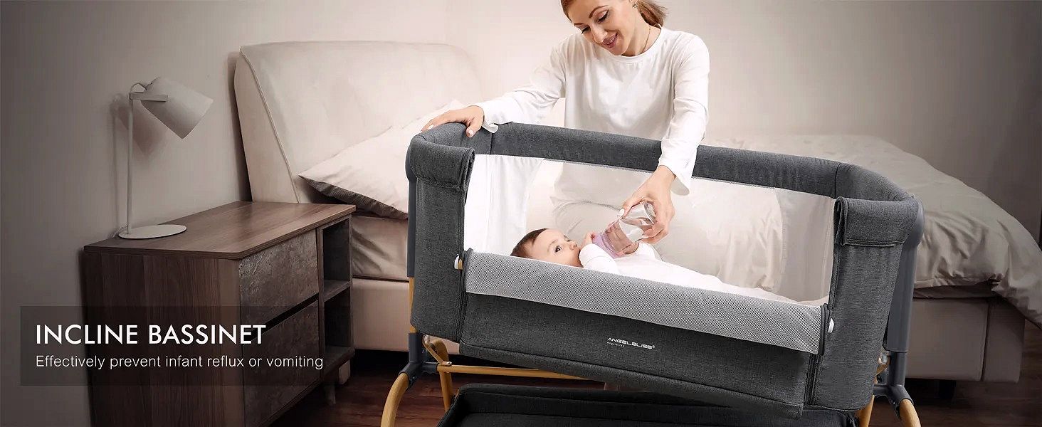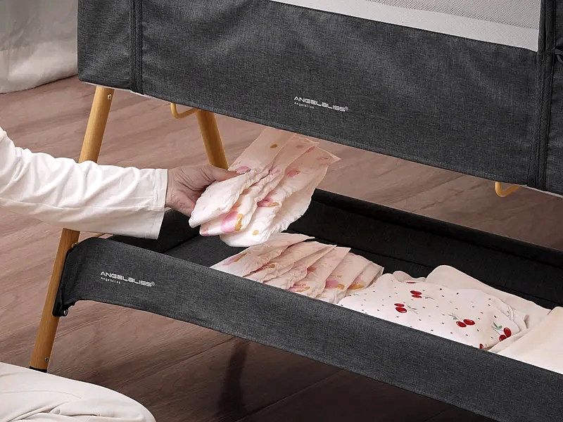 Die ANGELBLISS Babywiege kombiniert Schaukelfunktion, Höhenverstellung und eine leicht absenkbare Seitenwand für maximalen Komfort und Benutzerfreundlichkeit.