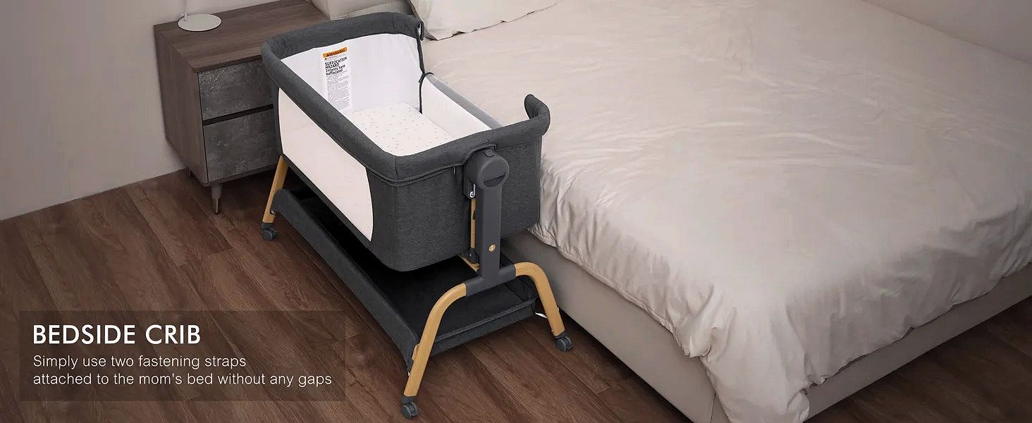 Das Beistellbett verfügt über 6 einstellbare Höhenstufen, passend für nahezu alle Betthöhen – ideal für nächtliches Stillen und engen Kontakt zur Mutter.