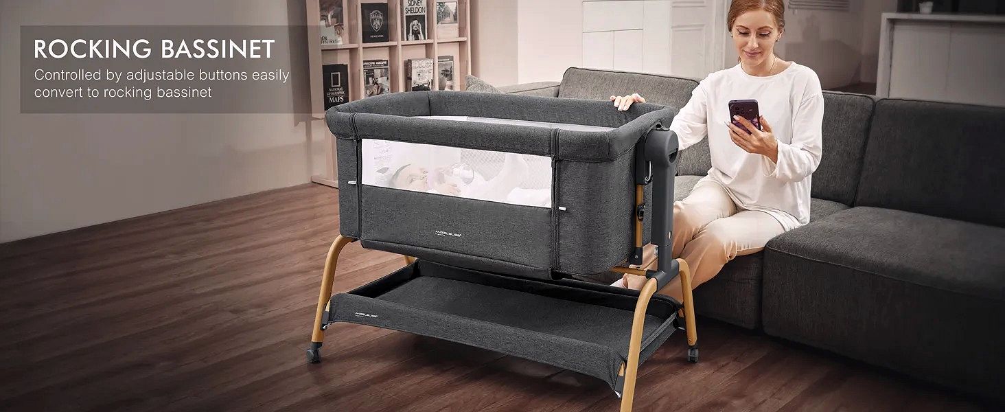 Babywiege / Beistellbett mit Schaukelfunktion, Matratze & Rollen – 3-in-1 für Neugeborene