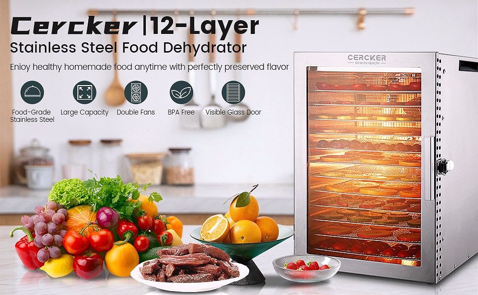 Cercker Lebensmittel-Dörrautomat mit 12 Edelstahl-Einschüben