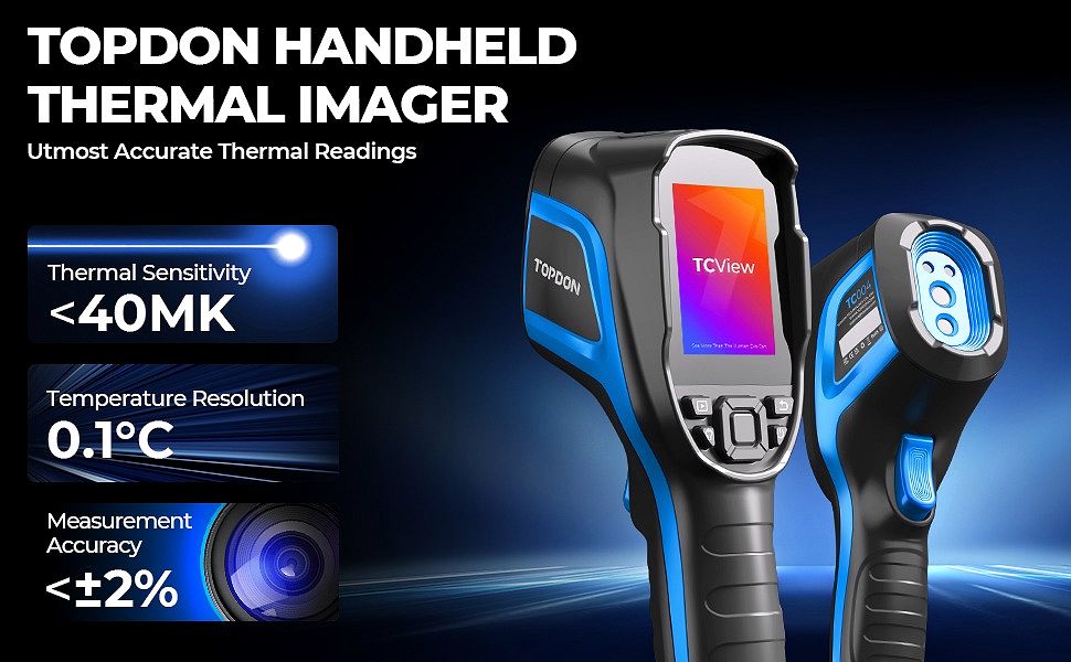 Die TOPDON TC004 Wärmebildkamera verfügt über eine 256 × 192 Infrarotauflösung mit einer thermischen Empfindlichkeit von unter 40 mK und liefert klare sowie detaillierte Wärmebilder.